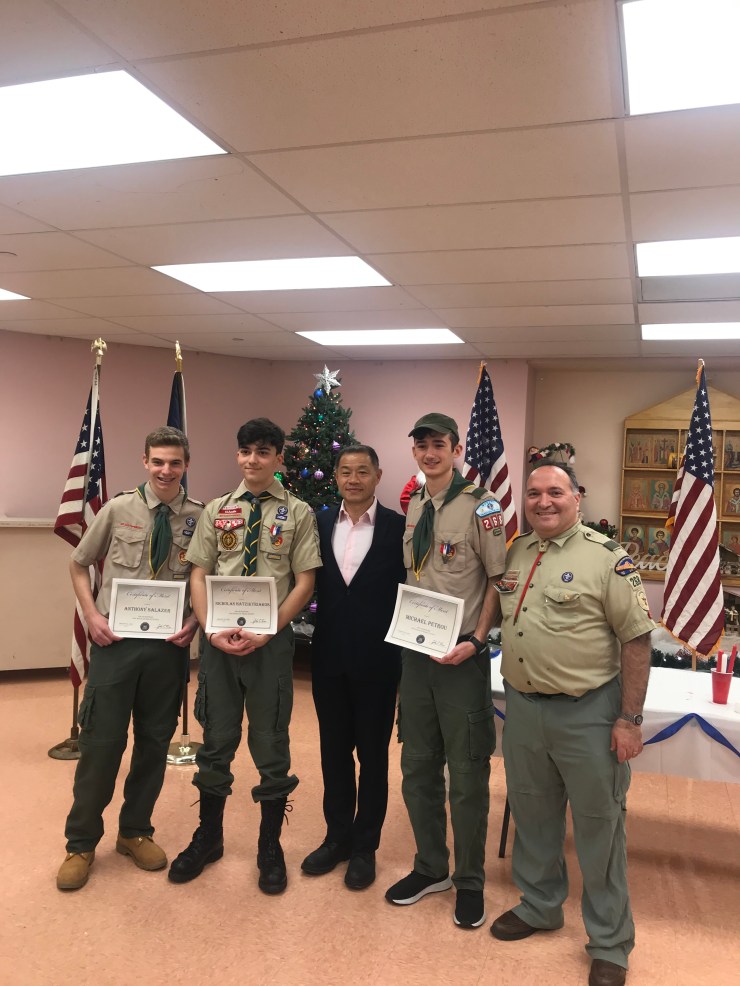 Anthony S., Nikolas H, NY State Senator John Liu, Michael P. & Scoutmaster Peter Moustakos